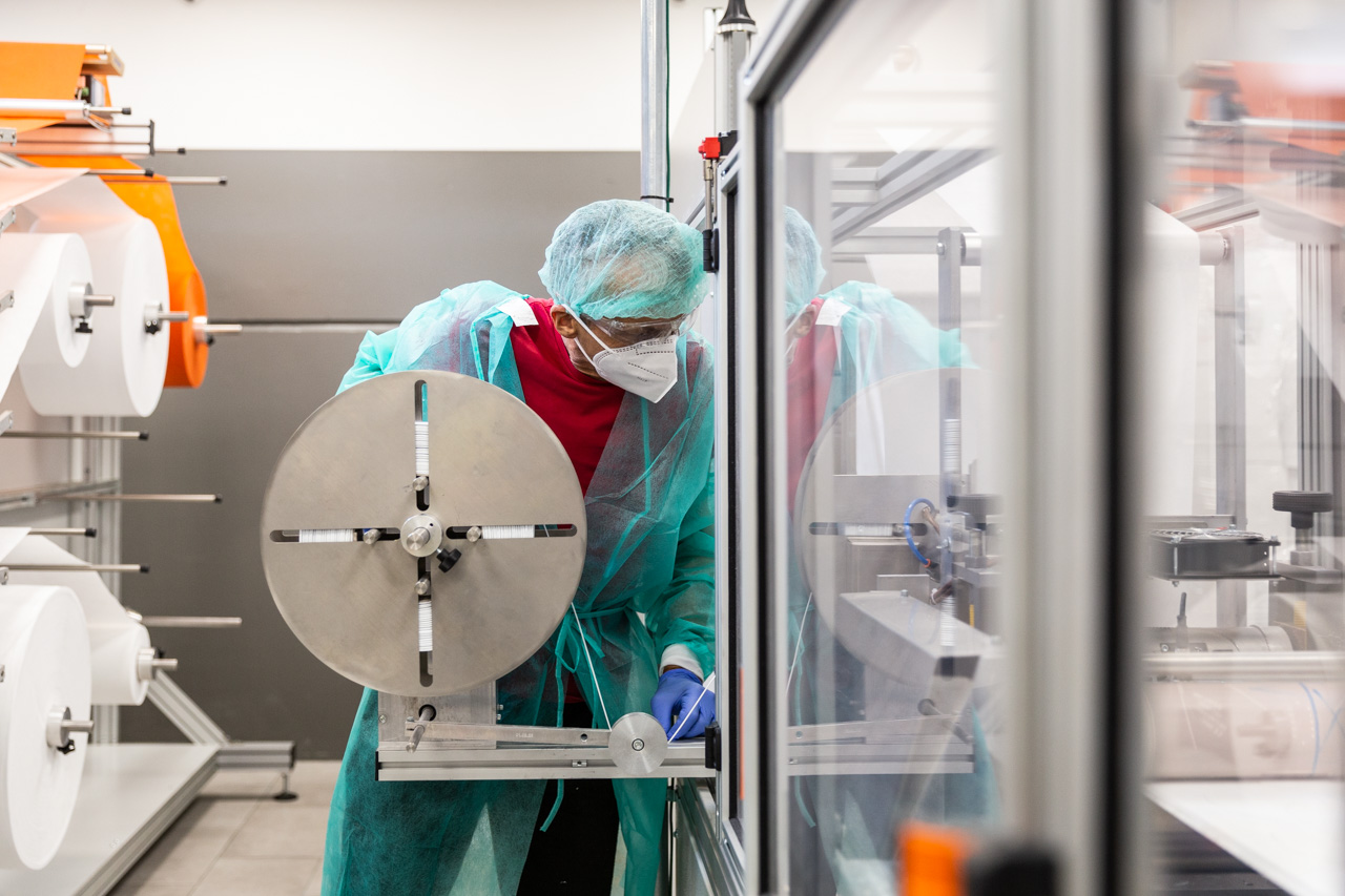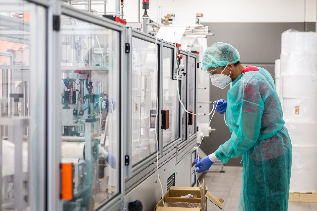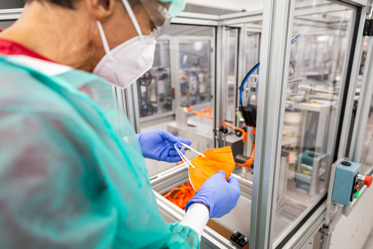 Nel 2020 causa emergenza pandemica SGF Automazioni ha ampliato i propri servizi nel settore medicale progettando macchinari per la produzione di DPI, nello specifico Mascherine FFP2 NR.